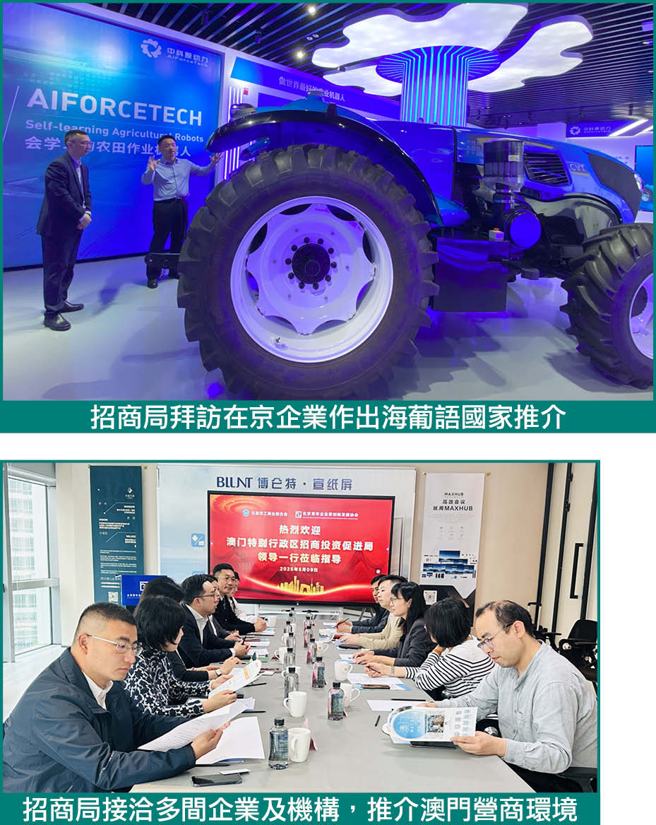 招商局在北京參加展會期間走訪多間企業,行業包括大健康、高新技術、餐飲等,宣傳澳門營商環境及作為中國與葡語國家“精準聯繫人”的角色。