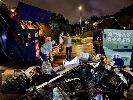 本澳多處地方因受風暴潮影響出現海水倒灌,多間商舖及民居受水淹浸,相關地區垃圾量明顯增加。在八號風球除下後,市政署已隨即調動人員,協調加派人手及車輛通宵到各區收集垃圾及清理街道,共派出26台垃圾車及16台壓縮桶吊運車進行垃圾清運工作,所收集的垃圾量已近700噸,收集量比平日多超過7成。垃圾收集工作將持續進行。