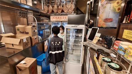 市政署巡查瞭解商戶食品之貯存處理及受影響情況,呼籲業界採取適當的善後措施
