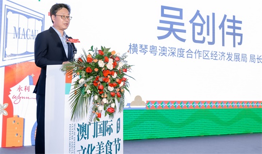 開幕式於9月30日晚在橫琴華髮商都舉行。橫琴粵澳深度合作區經濟發展局局長吳創偉表示,此次在橫琴舉辦澳門國際文化美食節(橫琴站),既是深化粵港澳大灣區合作、弘揚澳門特色飲食文化、共建“世界美食之都”的重要舉措。美食節不僅是展示特色產業的平台,更是促進消費升級、帶動文旅融合的重要契機。通過美食與文化的聯動,可以有效激發市場活力,帶動餐飲、商貿、文旅等相關產業鏈條的協同發展,形成新的經濟增長點,為橫琴和澳門的經濟適度多元發展注入新動力,並將進一步提升橫琴居民的生活質量,豐富精神文化生活,增強幸福感和歸屬感。一個地區的發展,不僅需要現代化城市建設,更需要承載人間煙火的溫暖與文化積澱。從文化角度來看,希望藉美食節這一平台,展示橫琴開放包容的文化特質,推動粵澳文化交流,深化兩地人民的相互理解與情誼,讓橫琴文化走向更廣闊舞台。