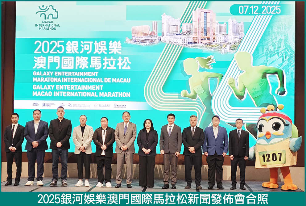 【本報訊】由澳門體育局、銀河娛樂集團及澳門田徑總會主辦的“2025銀河娛樂澳門國際馬拉松”將於本年12月7日(周日)舉行;馬拉松、半程馬拉松及迷你馬拉松分別於10月11日或12日開始接受報名,共12,000名額;期間延續往年舉辦嘉年華及賽裝評比等系列活動活躍賽事氛圍。賽事組委會於9月30日下午假銀河國際會議中心舉行新聞發佈會公佈賽事詳情及報名安排。出席嘉賓包括體育局代局長李詩靈、銀河娛樂集團董事程裕昇、澳門田徑總會理事長陳步倩等。