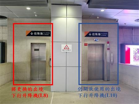 在工程實施期間,有需要人士在出境時,下行可使用升降機(L10),澳門保安部隊事務局將為升降機(L10)增加保養次數,以確保其安全運行。