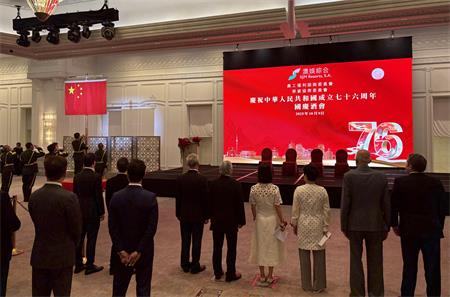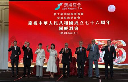 【本報訊】澳娛綜合度假股份有限公司聯同澳娱綜合員工福利諮詢委員會、澳娛綜合勞資協商委員會今天下午一時於上葡京禮堂舉行國慶酒會,慶祝中華人民共和國成立七十六周年。澳娛綜合董事局主席霍震霆、常務董事何超鳳、董事兼福諮會主席梁安琪、勞資協商委員會顧問黃顯輝大律師,以及2000多名員工出席國慶酒會,共同向祖國送上美好的祝願。