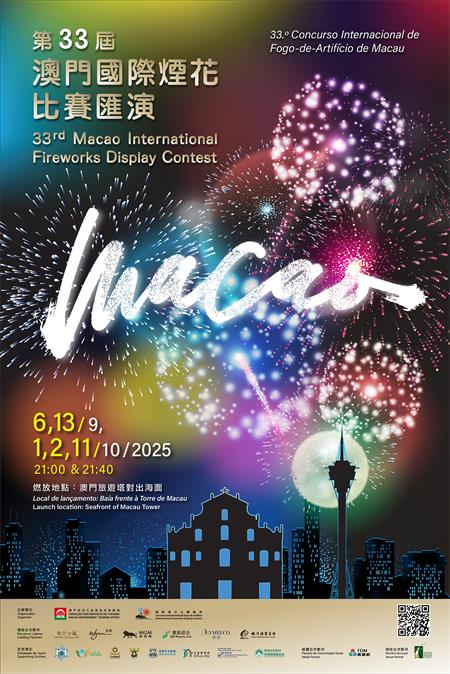 更多本屆澳門國際煙花比賽匯演的資訊,歡迎瀏覽專頁:http://fireworks.macaotourism.gov.mo及關注澳門特區政府旅遊局官方微信、微博、小紅書和抖音等社交媒體帳號。