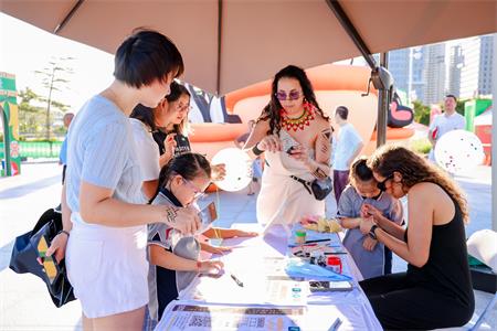 在“葡韻文化”專區,8個特色文化攤位展示了葡語國家及地區的傳統工藝品,澳門土生葡人導師現場主持手繪葡磚杯墊、環保袋等工作坊,讓參與者親手製作獨具葡韻的紀念品。許多家長帶著孩子參與特色手工製作,現場歡聲笑語不斷,文化在輕鬆愉快的氛圍中得以傳播。現場還設有互動式文化展牆,系統介紹九個葡語系國家和地區的歷史文化。