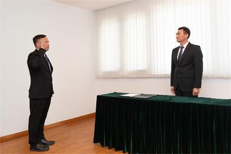 【本報訊】懲教管理局於2025年10月17日舉行新任主管人員就職儀式,由程况明局長監誓,並在李日明副局長和各部門主管見證下,維修及保養處處長李家能宣誓就任。