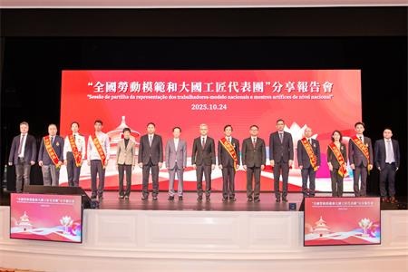 代表團七名勞動模範及大國工匠,包括高鳳林、洪家光、段江南、詹春珮、諸懿青、劉忠、楊俊,分別來自高端製造、人工智慧、金融航運、文化藝術、餐飲服務等多個國家戰略領域和重點民生行業,他們分享了自身經歷,細述在技術攻關、技藝傳承和職業發展道路上的奮鬥故事,並闡述了對勞動的理解與感悟,讓本澳勞動者以此作為榜樣,激發其在自身的不同崗位上發光發熱,作出更大的貢獻。