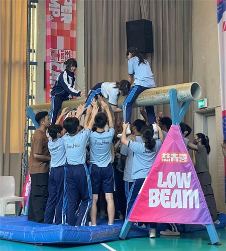 學生進行高峰活動“飛越橫樑”