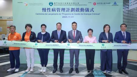 在儀式上,羅奕龍局長致辭時表示,衛生局秉持“預防優先,妥善醫療”的宗旨,貫徹落實習近平主席提出“構建涵蓋生命全週期的健康保障體系”的重要指示,持續完善醫療服務體系、加強專業人才培訓,並促進全民身心健康。慢性病已成為影響澳門居民健康的主要挑戰,在澳門總體死亡個案中,約80%由慢性病引起。為實現“健康澳門”的目標,必須將慢性病管理的“關口前移”,即從“患病後治療”轉向“預防與早期管理”,期望在2030年前,全面提升居民對慢性病的“知曉率”、“治療率”和“控制率”,有效降低慢性病死亡風險。衛生局已積極推動多項慢性病防控措施,包括實施“慢性病篩查計劃”,鼓勵居民善用醫療券在社區進行健康管理,並將社區自助檢查站增加至146個,從而提升慢性病的知曉率。此外,建立了“慢性病管理質量指標體系”,透過統一診療標準,推動基層醫療人員持續提升專業水平,顯著提高糖尿病和高血壓患者的控制率。他強調,與社團合作啟動“慢性病管理計劃”是落實特區政府“資源下沉”政策的重要舉措,將依托社會團體的社區服務網絡,將病情穩定的慢性病患者分流至社區門診進行協同管理,這不僅有助減輕公營醫療機構的服務壓力,更能讓居民在社區中享有優質且連續的健康管理服務,並促進醫療系統的可持續發展。