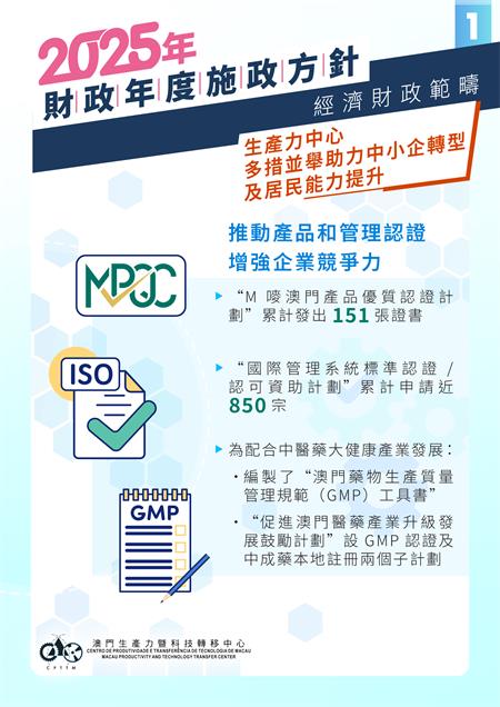 管理認證和產品認證是提高企業競爭力的重要手段。中心和廠商聯合會於2018年推出的“M嘜澳門產品優質認證計劃”,累計已發出151張證書,成為澳門優質產品的“信心保證”。此外,“國際管理系統標準認證/認可資助計劃”至今累計申請近850宗,今年申請數較去年同期增長約24%。而在“2025澳門企業國際管理認證嘉許典禮”上,共有118家維持國際管理認證6年至20年或以上的企業獲得表彰。