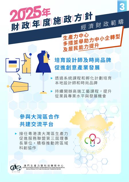 在時尚創意領域,中心透過系統課程和孵化計劃培育本地設計師和時尚品牌,並每年舉辦澳門服裝節。今年首次組織巴黎時裝周考察研學團,讓設計師參觀商貿展及著名時裝品牌博物館,並於巴黎時裝學府ESMOD參加研習課程。