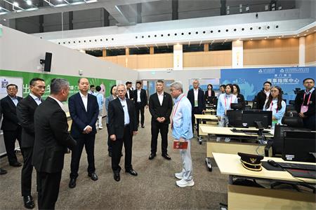 岑浩輝視察設於澳門東亞運動會體育館的十五運會澳門賽區賽事指揮中心。