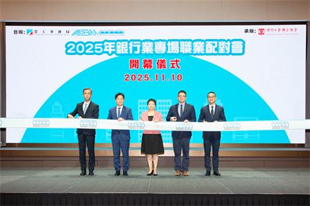 葉兆佳在致辭中表示,澳門銀行公會聯同業界持續配合特區政府“人才建澳”的施政理念。自2021年起,連續五年響應勞工局推出的“職出前程”實習計劃,為本澳青年提供實習崗位;亦支持勞工局和澳門工會聯合總會共同舉辦是次“2025年銀行業專場職業配對會”和本年八月份舉行的“促進就業大型招聘會”活動;又共同合辦“銀行業定向人才培養項目”,持續為廣大本澳在讀大學生及應屆畢業生,提供銀行業務相關培訓、實習和就業的機會。未來將繼續協調業界深化人才培育與就業支持舉措,助力推動澳門金融業邁向更高質量的發展階段。
