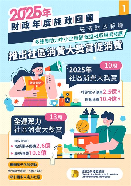為提振消費市場信心,特區政府先後推出“2025年社區消費大獎賞”及“全運聚力‧社區消費大獎賞”。其中“全運聚力‧社區消費大獎賞”活動有超過2萬間不同行業的中小商戶參與,截至11月2日有2.6億元電子優惠已被核銷,聯動全澳商戶消費約10.6億元。