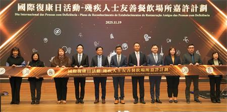【本報訊】為響應聯合國訂定的“國際復康日”,由社會工作局及6個公共部門、22間民間機構及2間學校合辦,旅遊局及市政署協辦的“國際復康日活動-殘疾人士友善餐飲場所嘉許計劃”,於11月19日下午假澳門科學館會議廳順利舉行,共有61間由本澳康復機構推薦或自薦的餐飲場所獲得嘉許。包括合辦和協辦單位、餐飲場所代表和殘疾人士約200人出席。為便利不同人士能無障礙地參與活動,現場提供多類無障礙設施,包括手語翻譯、AI字幕、口述影像及無障礙通道等。