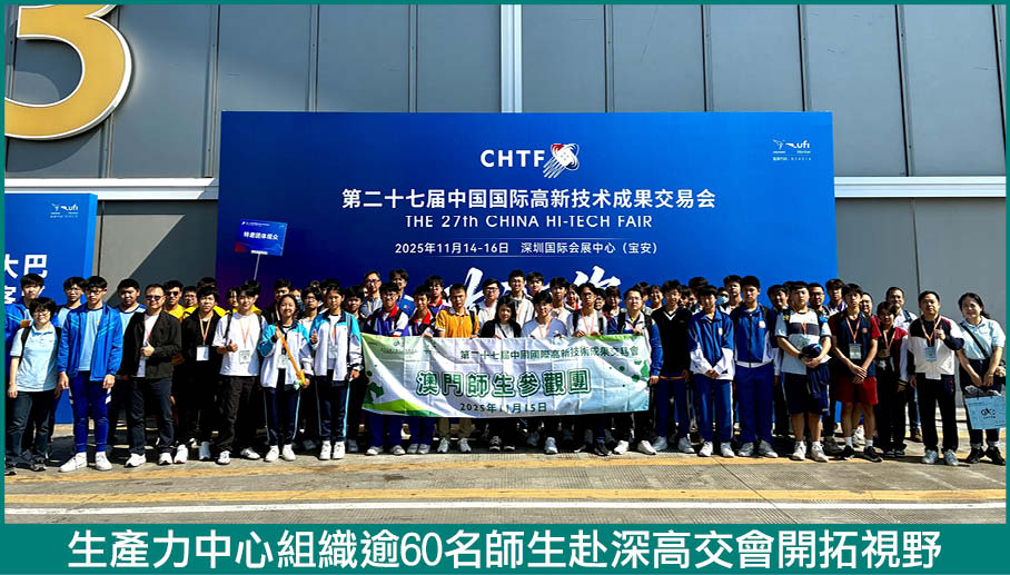 【本報訊】為深化澳門與內地科技領域的交流合作,進一步推動高新技術產業發展,生產力暨科技轉移中心(下稱“生產力中心”)聯同科學技術發展基金,於1114日組織本地科技交流團前往深圳,參觀第二十七屆中國國際高新技術成果交易會(下稱“高交會”)。此次科技交流團成員逾45人,包括政府部門、高等院校及科技企業代表,透過實地考察與交流,對接前沿科技資源,開拓創新合作空間。