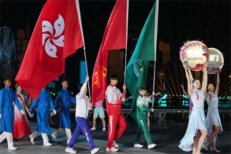 隨後進行了全運會會旗交接儀式,十五運會組委會3位執行主任,澳門特區行政長官岑浩輝、香港特區行政長官李家超、廣東省省長孟凡利先後接過會旗,並交予十五運會組委會主任、國家體育總局局長高志丹,最後由局長高志丹將會旗移交予湖南省省長毛偉明,標誌著2029年在湖南省舉行的十六運會籌備工作正式啟動。