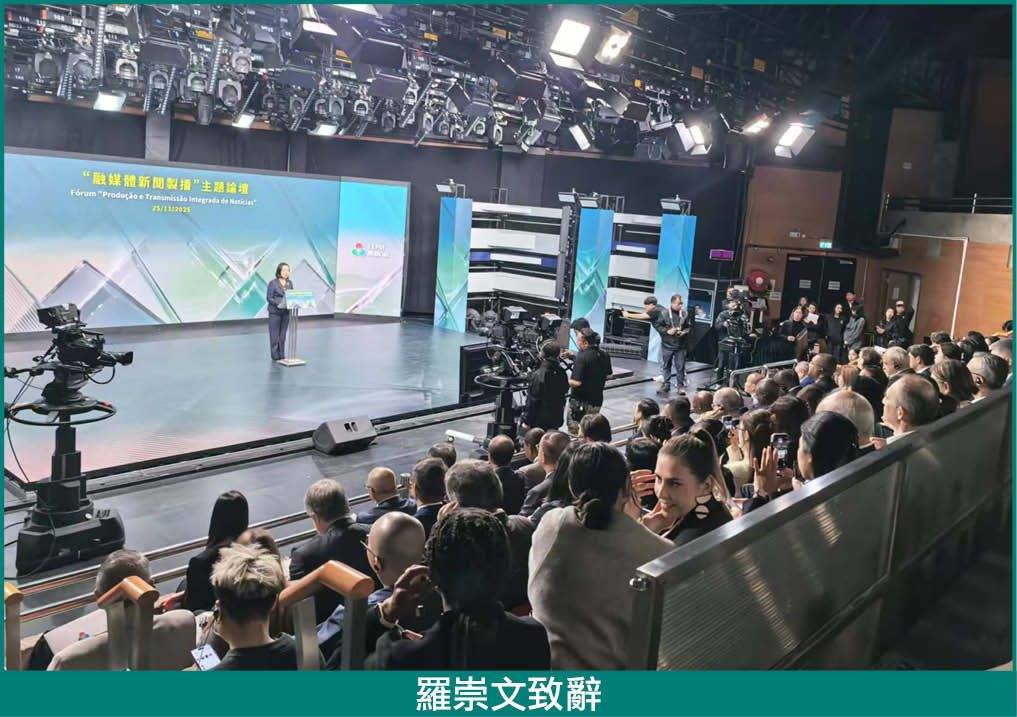 【本報訊】11月25日,澳廣視於綜藝二館演播室舉行“融媒體新聞製播”論壇,活動得到外交部駐澳特派員公署支持,由澳廣視葡文新聞及節目部總監羅比士(Gilberto Lopes)主持, 請來葡萄牙廣播電視公司(RTP)管理委員會顧問João Nuno Nogueira、安哥拉公共電視台(TPA)資訊部副總監Amândio Caweie Cafuanda、幾內亞比紹國家電視台(TGB)行政與財務總監Adulai Demba Baldé、東帝汶廣播電視台(RTTL)資訊與時事總監Horácio Afonso FátimaBabo,以及澳廣視中文新聞及資訊節目部總監劉婧,深入探討行業發展;論壇同時聚焦葡語系國家如何順應潮流,實踐融媒體新 聞製播,開創資訊傳播新格局。