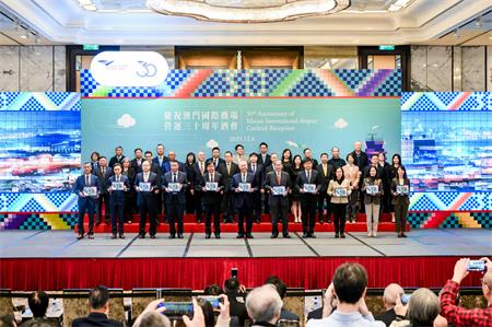 【本報訊】澳門國際機場專營股份有限公司(CAM)於12月4日在澳門美獅美高梅隆重舉辦澳門國際機場營運30周年慶祝酒會。全國政協副主席何厚鏵先生、澳門特别行政區行政長官代表、運輸工務司司長譚偉文,CAM董事會主席馬有恆、中國民用航空局副局長馬兵、中聯辦經濟部副部長楊全州生、外交部駐澳門特派員公署辦公室主任付愛民參贊等主禮嘉賓蒞臨現場,為酒會增添光彩,與近四百位來自全國人大代表、政協委員、友好機場、民航同業及本地知名人士齊聚一堂,共同見證這一歷史時刻。