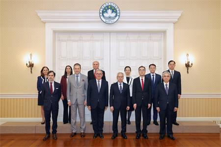 行政長官岑浩輝與葡萄牙議會外委會主席塞薩里奧(José Cesário)一行合影。