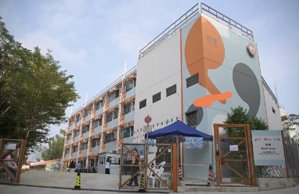 12月4日,工作人員在位於香港大埔的過渡性房屋"善樓"工作。大埔宏福苑火災發生後,香港特區政府房屋局通過"善樓"等多個過渡性房屋項目迅速安置宏福苑受影響居民。 中新社記者 陳永諾 攝