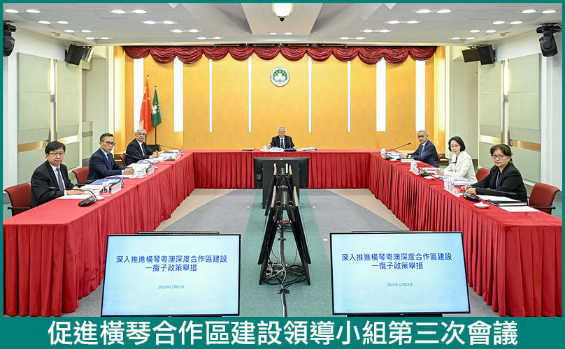 【本報訊】行政長官岑浩輝近日召開並主持促進橫琴粵澳深度合作區建設領導小組第三次會議,總結和探討合作區各項工作的推進情況。