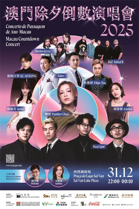 【本報訊】為與市民旅客共迎新年,“2025澳門除夕倒數演唱會”和“2025氹仔除夕倒數晚會”將於12月31日晚上,分別在澳門西灣湖廣場和氹仔龍環葡韻舉行。香港著名歌手陳蕾、樂隊Dear Jane、湯寶如,以及多位本澳歌手、樂隊將分別於澳門及氹仔傾力演出,營造濃厚的節日氛圍。其中“澳門除夕倒數演唱會”在倒數環節將不會安排煙花表演,敬請市民及旅客留意。