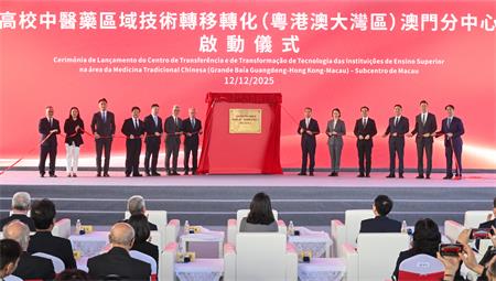 【本報訊】特區政府按照2026年施政方針部署,圍繞“四大建設項目”,於2025年12月12日下午在橫琴粵澳深度合作區(下稱“合作區”)進行澳門大學合作區校區動工儀式(下稱“澳大動工儀式”)及於澳琴兩地進行高校中醫藥區域技術轉移轉化(粵港澳大灣區)澳門分中心啟動儀式(下稱“澳門分中心啟動儀式”)。