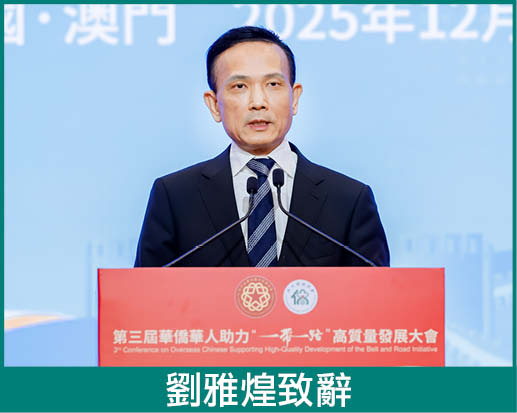 他又表示,澳門將於“十五五”持續發揮自身優勢,進一步完善政策支持體系,優化營商環境,為僑商僑領在澳投資興業提供更堅實的保障,支持僑界資源與澳門金融、科技、文旅等產業深度融合;同時,持續做好面向東盟、輻射葡語、西語國家的經貿合作平台,依託僑界橋樑作用,促進中外文明交流互鑒,講好中國故事、傳播澳門聲音,讓“共商共建共享”的理念更加深入人心,助力“一帶一路”建設跑出高質量發展的“加速度”。