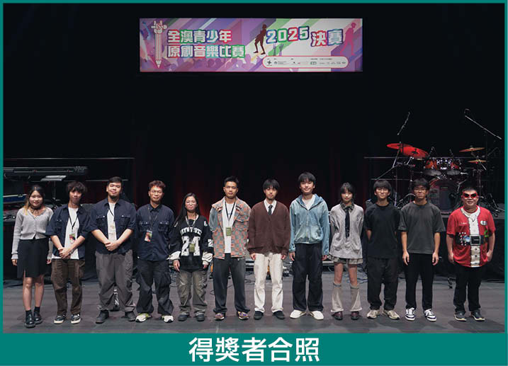 【本報訊】由澳門青年音樂協會主辦、澳門特別行政區政府文化發展基金資助,並獲澳門文化局及澳門文化中心場租優惠支持的《全澳青少年原創音樂比賽2025》,於2025年12月24日晚上7時45分,假澳門文化中心小劇院舉行。比賽當晚即場公佈晉身決賽的8首原創作品,角逐冠、亞、季軍,以及多個獎項。