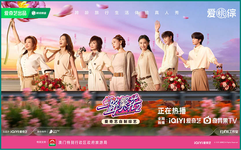 跨齡旅行生活體驗真人秀節目《一路繁花》,2025年初第一季播出後在內地收穫高話題度及廣泛關注。第二季嘉賓陣容強大,集結劉曉慶、何賽飛、劉嘉玲、張栢芝、寧靜、柯淳與邵子恒等多位不同年代的人氣藝人,共同開啟內蒙古、貴州、重慶、泉州、香港及澳門等多地深度旅程。