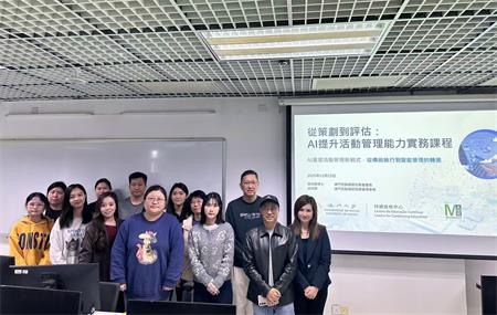 課程由知名互聯網及數據專家張榮顯與資深傳播專家盛綺娜擔任主講導師。他們憑藉深厚的學術背景與豐富的行業實戰經驗,將原本艱澀的AI技術轉化為易於上手的實用工具。課程內容涵蓋活動構思、策劃撰寫、執行管理、成效評估及數據報告的完整生命周期,重點講授了文書智人、Perplexity、Kimi、Canva、DiVoSurvey及各類生成式AI工具在活動管理中的具體應用。學員在課程期間積極參與交流,並在導師指導下透過多個實務案例的演練,熟悉相關工具的操作與應用。