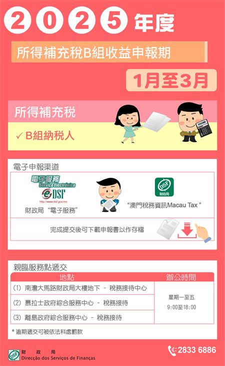 1月至3月遞交2025年度所得補充稅B組收益申報書