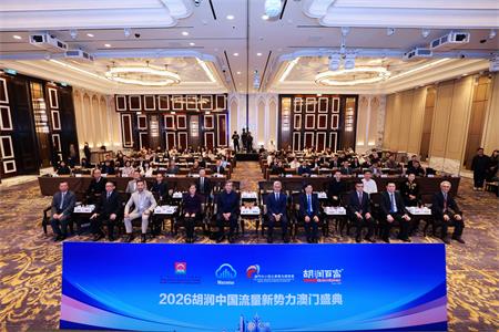 【本報訊】由澳智通科技有限公司及澳門中小型企業聯合總商會聯同胡潤研究院攜手合辦《2026胡潤中國流量新勢力澳門盛典》,於1月21日下午2:30假澳門美獅美高梅1樓宴會廳舉行,出席的主禮嘉賓有經濟財政司戴建業司長,全國政協委員、澳門銀行公會葉兆佳主席、旅遊局文綺華局長、招商局李藻森代主席、胡潤集團胡潤董事長兼首席調研官、胡潤集團呂能幸CEO兼聯合創始人、澳智通科技有限公司吳偉恩董事長、澳門中小型企業聯合總商會胡景光理事長、澳門國際投資協會蘇永勝理事長,其他出席嘉賓有美高梅中國控股有限公司馮小峰首席執行官及執行董事、各地企業家、全國百強流量新勢力機構代表、頭部達人及品牌代表等,逾150人出席,場面熱烈。
