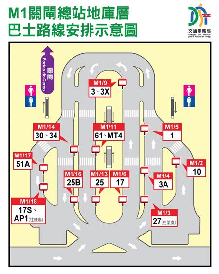 原停靠“關閘廣場”站的3A路線及停靠“關閘東側上落客區”站的17特班車(17S)路線,改於“關閘總站”上落客;25、27(往望廈)、51A及61路線亦會調整“關閘總站”內的停靠位置。