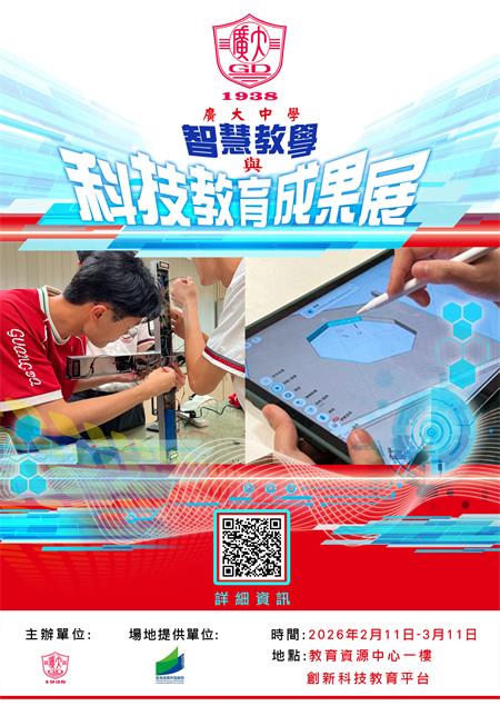 【本報訊】教育及青年發展局轄下教育資源中心創新科技教育平台於2026211日至311日展出廣大中學智慧教學與科技教育成果。廣大中學配合科技時代步伐,擁抱科技教育變革,本次“智慧教學與科技教育成果展”旨在系統性地展示該校在創新教育路上的探索與成果,通過匯聚八項特色成果,涵蓋“智慧教學提效減負”和“科技創新應用”兩大內容主軸,展出數學科智慧教學、英文科智慧教學、智能保安系統、人體當“感”收音機、夾公仔機、智盾窗衛Pro、比賽機械人、郵政局大樓椅等相關科技實踐成果,部分展品曾獲本地及外地奬項。