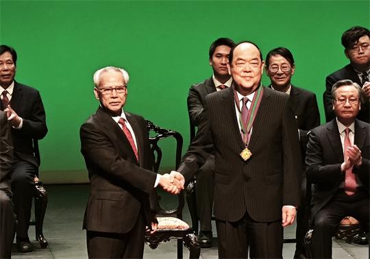 榮譽勳章分為大蓮花榮譽勳章、金蓮花榮譽勳章及銀蓮花榮譽勳章,是用以表揚在本地或外地對澳門特別行政區的形象和聲譽有傑出貢獻的人士或實體或在任何領域對澳門特別行政區的發展有重大貢獻的人士或實體。