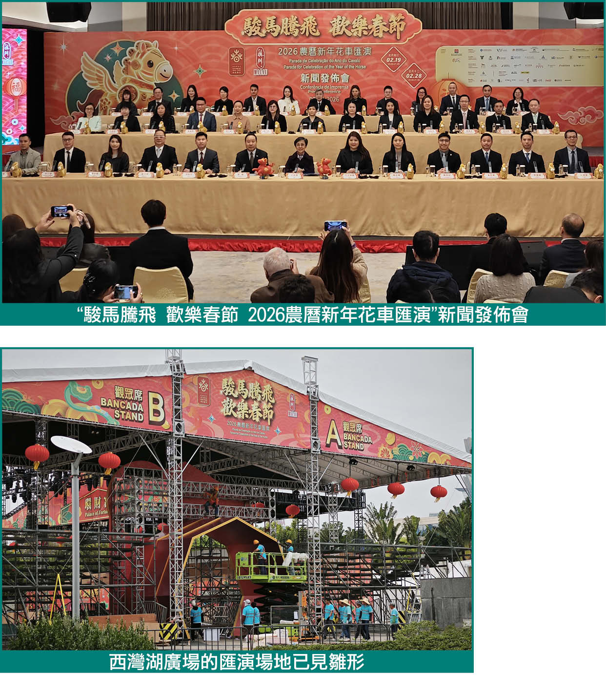 “駿馬騰飛歡樂春節2026農曆新年花車匯演”由旅遊局主辦以及亞洲旅遊交流中心、市政署、經濟及科技發展局(下稱“經科局”)、招商投資促進局(下稱“招商局”)、文化局、體育局和橫琴粵澳深度合作區經濟發展局(下稱“合作區經發局”)協辦。旅遊局局長文綺華及亞洲旅遊交流中心主任張棟等嘉賓出席新聞發佈會。