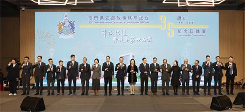 【本報訊】為慶祝澳門保安部隊事務局成立三十五周年,本局於2月4日假澳門旅遊塔四樓宴會廳舉行晚宴,以“科技協進 齊護平安”為主題,回顧本局發展歷程,分享在資訊技術研發、綜合技術、口岸保障及行政管理等方面的工作成果,並展望未來工作。