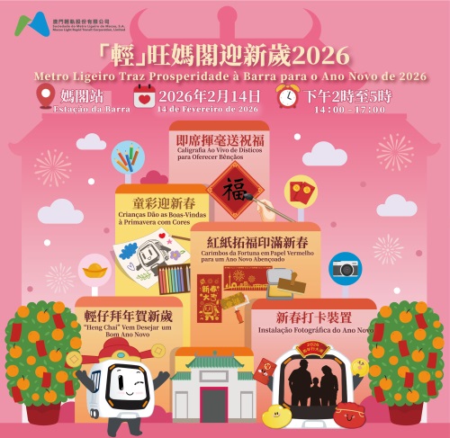【本報訊】新春將至,澳門輕軌股份有限公司(下稱“輕軌公司”)特別推出“輕”旺迎新歲2026系列活動,與市民及旅客共賀佳節。除了在新春期間推出主題列車增添節日色彩外,輕軌公司也將於2月14日(年廿七)在輕軌媽閣站舉辦“‘輕’旺媽閣迎新歲”活動,現場將免費贈送賀年揮春,並提供自助印製利是封等互動體驗,與市民及旅客一同提前感受新年氣氛。