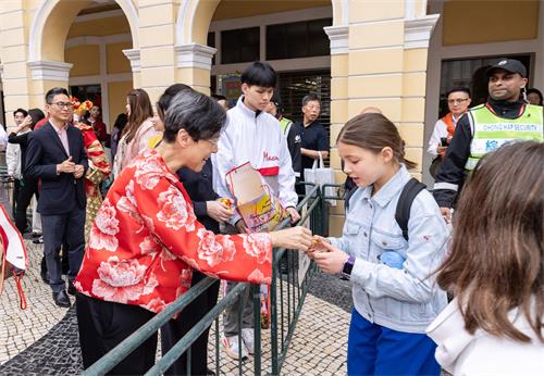 在巡遊隊伍的帶領下,嘉賓們由大三巴牌坊到達議事亭前地燃放炮竹,寓意“炮竹一聲除舊歲”,揭開一連兩天巡演活動的序幕。