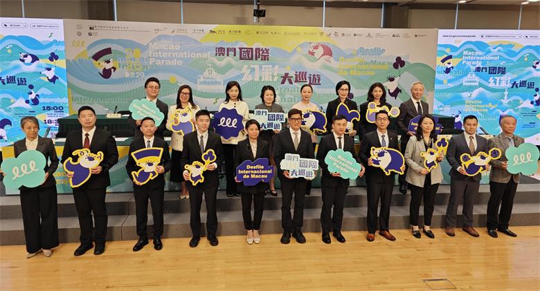 出席新聞發佈會的嘉賓還有聯合主辦及支持單位的代表。“2026澳門國際幻彩大巡遊”由文化局、澳門永利渡假村、澳娛綜合度假股份有限公司、金沙中國有限公司、美高梅及銀河娛樂集團聯合主辦,澳門海關、市政署、旅遊局、治安警察局、消防局、教育及青年發展局、體育局、交通事務局、澳門航空股份有限公司及澳門街坊會聯合總會全力支持,澳門廣播電視股份有限公司為直播機構,特別鳴謝澳門中區南區工商聯會。