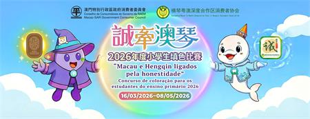 為使學生認識澳門與橫琴粵澳深度合作區有關誠信店規則深度銜接、機制對接、兩地“誠信店”互認等工作,提升兩地消費信心,澳門特別行政區政府消費者委員會(下稱澳門消委會)與橫琴粵澳深度合作區消費者協會(下稱合作區消協)合辦“誠牽澳琴” 2026年度小學生填色比賽。