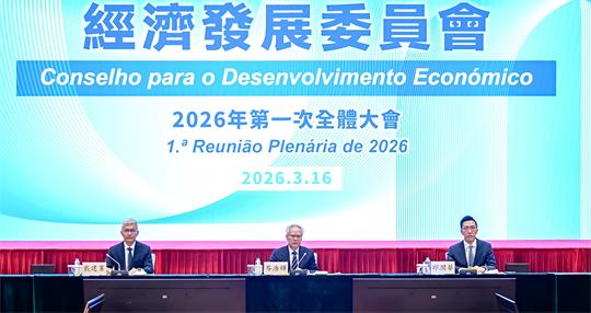 【本報訊】“經濟發展委員會2026年第一次全體大會”於今(16)日上午召開,大會由經濟發展委員會主席、行政長官岑浩輝主持。委員會副主席、經濟財政司司長戴建業在會上介紹了澳門經濟現況及發展策略,經濟及科技發展局局長邱潤華匯報了委員會近期的工作情況。