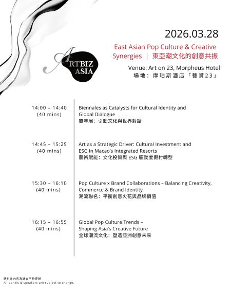 Artbiz Asia兩天活動現正接受報名參與,詳情可參與官方網頁www.artbizasia.com。