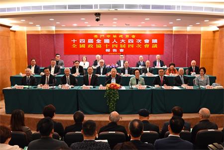 【本報訊】澳門中華總商會昨(19)日下午六時在會址舉行“十四屆全國人大四次會議、全國政協十四屆四次會議報告會”。報告會由全國政協常委、中總會長崔世昌主持。全國政協委員、中總副監事長梁少培,全國政協委員、中總會董李佳鳴,全國人大代表、中總副會長劉藝良,全國人大代表、中總副理事長蕭志偉,先後向與會的會長、會董、理事、監事報告“兩會”基本情況和暢談參加“兩會”的感受和體會。中總副會長范耀勝、賀定一、林金城,理事長馬志毅等逾百人出席報告會。