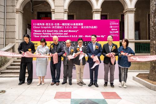 【本報訊】為推動本地藝文發展,加深大眾對本澳藝術家的認識,與藝術家一同走進這次視覺與感觀的雙重盛宴。由澳門教區演藝文協會、澳門紐曼樞機藝文館、揮毫之友、Sour Graphik及貳向工作室合辦,已於二零二六年三月二十一日下午三時正,順利舉行《小城角落,是生活、也是一種回憶》水墨畫展暨《Sour Graphik:夫巴遊記2 S.E.O. 369 ― 吳文政作品展》聯展開幕活動。出席主禮嘉賓包括:澳門教區演藝文協會理事長梁金泉先生、澳門紐曼樞機藝文館館長黃啟堯女士、澳門頤園書畫會會長李俊鳴先生、水墨畫家李得之老師、書法家蔡傳興老師、澳門插畫師協會會長彭曉盈女士、《小城角落》策展人陳麗文女士以及《夫巴遊記2 》聯合策展人及藝術家吳文政先生。