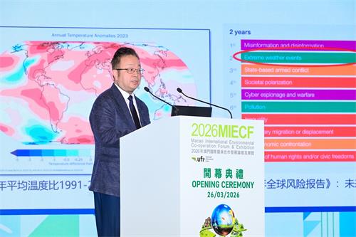 【本報訊】 “2026年澳門國際環保合作發展論壇及展覽”(下稱“2026MIECF”)邀請清華大學環境學院教授、清華大學碳中和研究院院長、中國工程院院士賀克斌於今(26)日開幕典禮上擔任主題演講嘉賓,賀克斌院士以“雙碳行動與無廢城市建設”為題發表主題演講,結合“雙碳”目標,系統梳理國家“無廢城市”建設的工作進展,並就深化固廢治理與“雙碳”目標的協同推進,提供實踐參考與政策建議。
