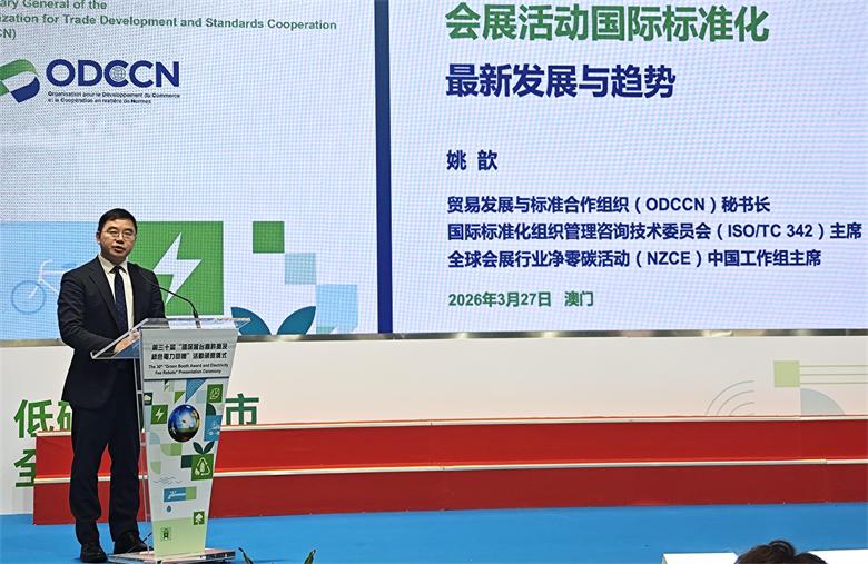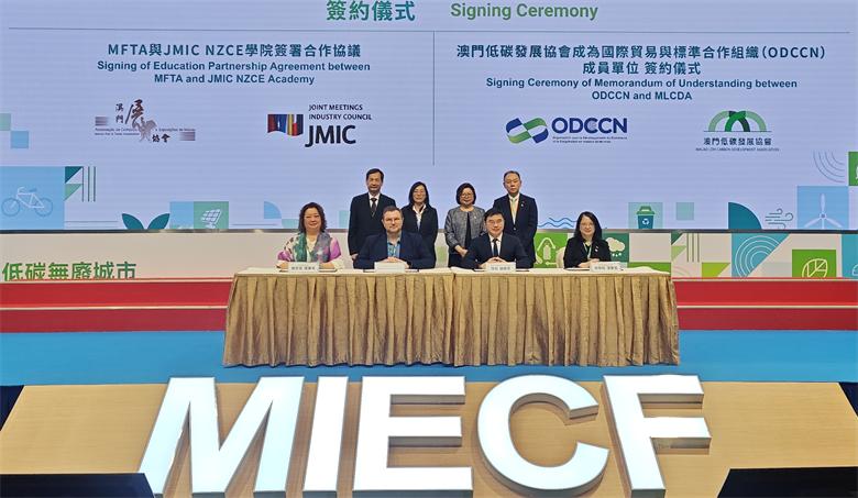 【本報訊】澳門展貿協會與澳門低碳發展協會合辦的第三十屆環保展台嘉許獎及綠色電費回贈頒獎禮於27日在2026MIECF期間舉行,活動同步舉辦了主辦機構與國際會議產業聯席委員會(JMIC)、貿易發展與標準合作組織(ODCCN)的合作簽署儀式,合作涵蓋綠色會展人才培訓、國際合作及中國碳中和會展活動案例徵集等內容。