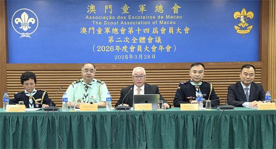 【本報訊】澳門童軍總會第十四屆會員大會第二次全體會議–二零二六年度會員大會年會,於三月二十八日在氹仔童軍總會會址舉行,會議一致通過理事會會務工作報告、財務報告及監事會報告。理事會主席梁少培勉勵全體童軍繼續努力,發揚童軍團隊合作精神,為世界、為國家、為澳門、為澳門童軍運動的發展,貢獻出自己更大的力量。